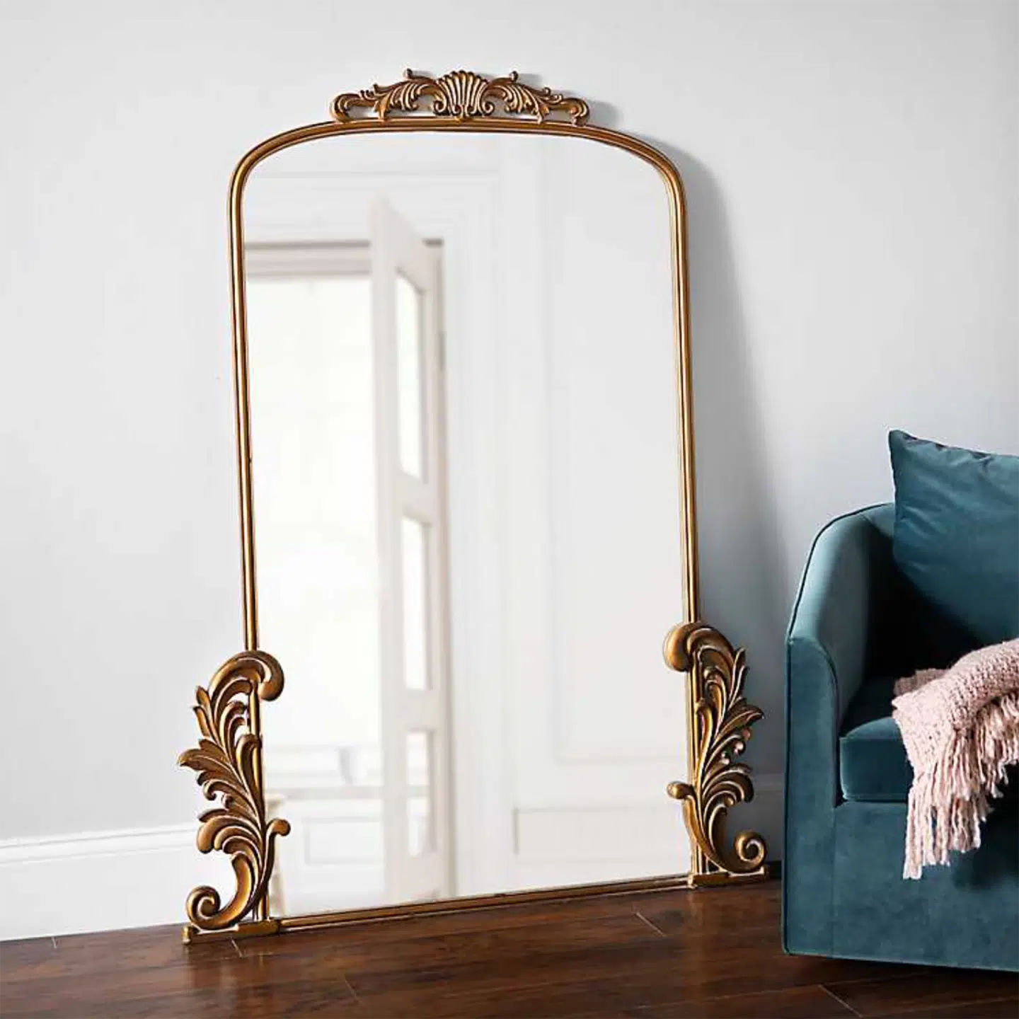 10. Kirkland’s Home Gold Bordeaux Ornate Leaner Mirror
