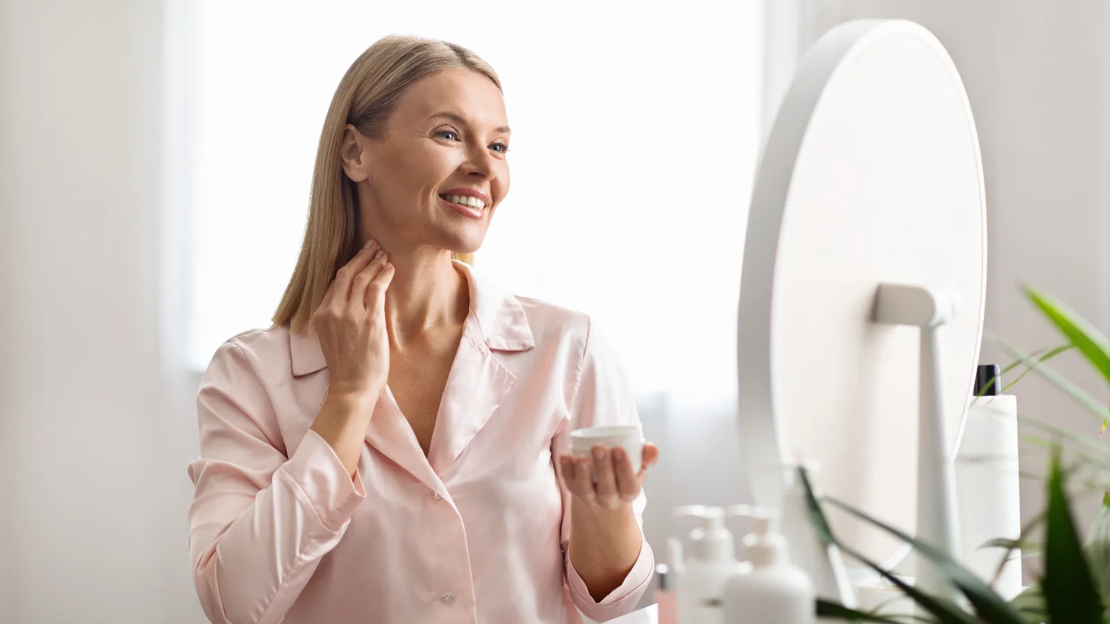 Consistency is key—don’t expect your aging skin to change drastically overnight. The Cleveland Clinic says it can take around three months for you to start seeing the results.