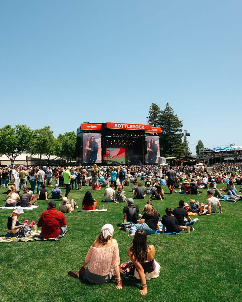 Can I bring a blanket to sit on? Yes! Small to medium-sized blankets and beach towels are allowed at BottleRock to sit on, and it’s so nice to be able to sit on the designated area towards the back to rest. Chairs are not allowed.