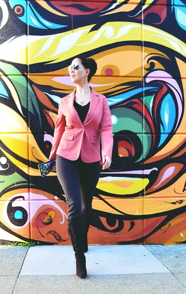 Great outfit, the blazer looks great on you. Also, I LOVE that backdrop!