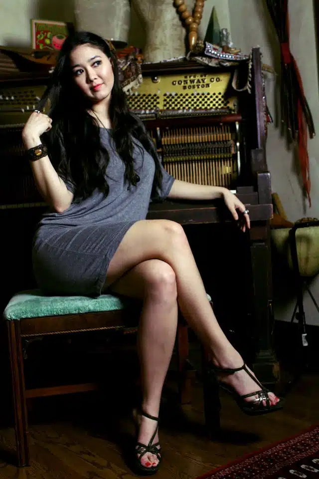 This grey Max Studio dress is SO comfy. You can’t see it because of the way I’m sitting, but it also has a crocheted/braided belt accent around the waist. Simple and chic. The leather bow is from a street vendor at Dolores Park that Nicole and I came across while shooting a video for Manitic. Nicole bought it and I snagged it to go with the brown accents, and this super old piano.