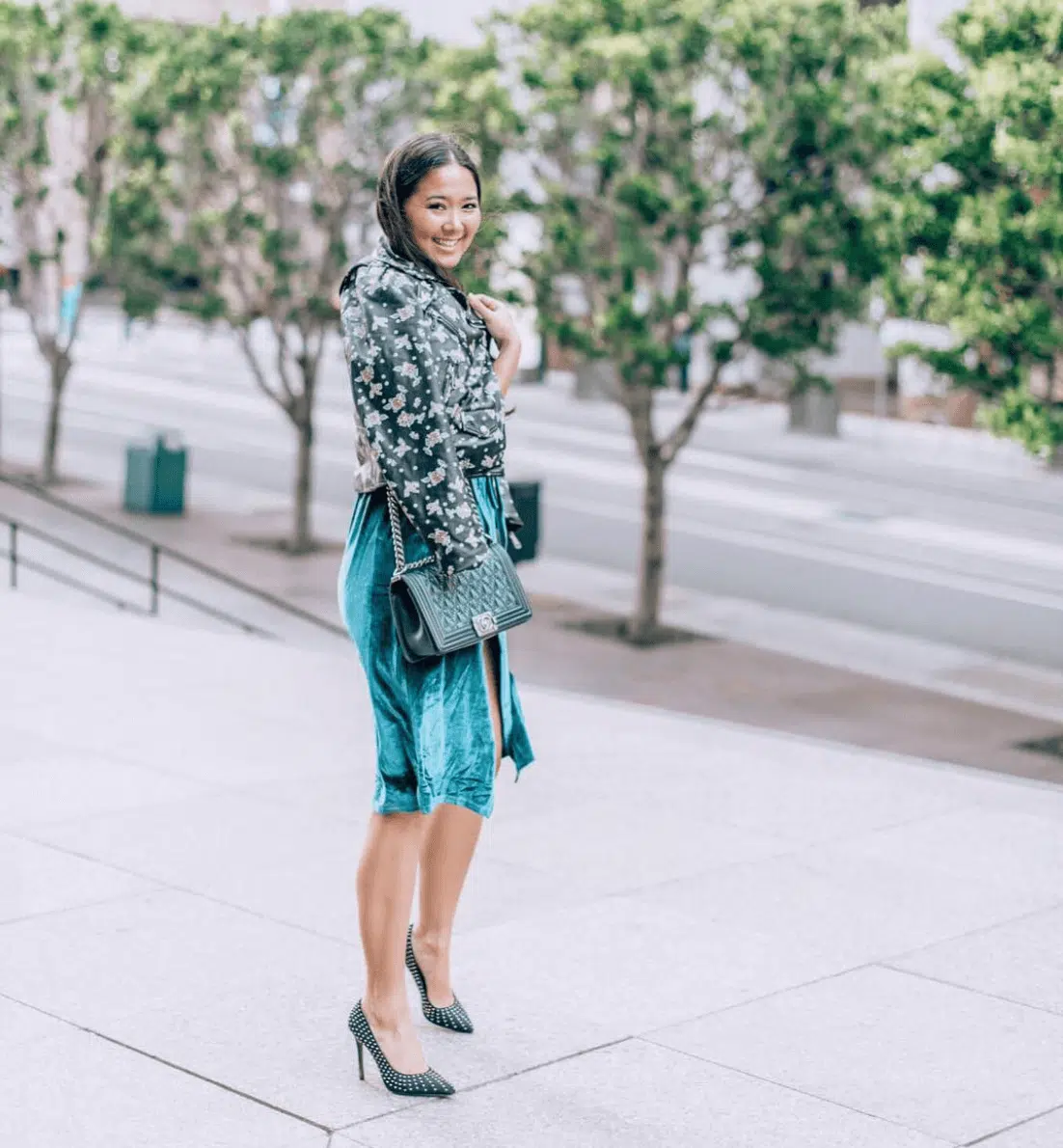 Wore this gorgeous teal velvet dress + matching Chanel bag for a date night at Leo’s Oyster Bar. Read all about Bag Borrow or Steal and why I love them on the blog here.