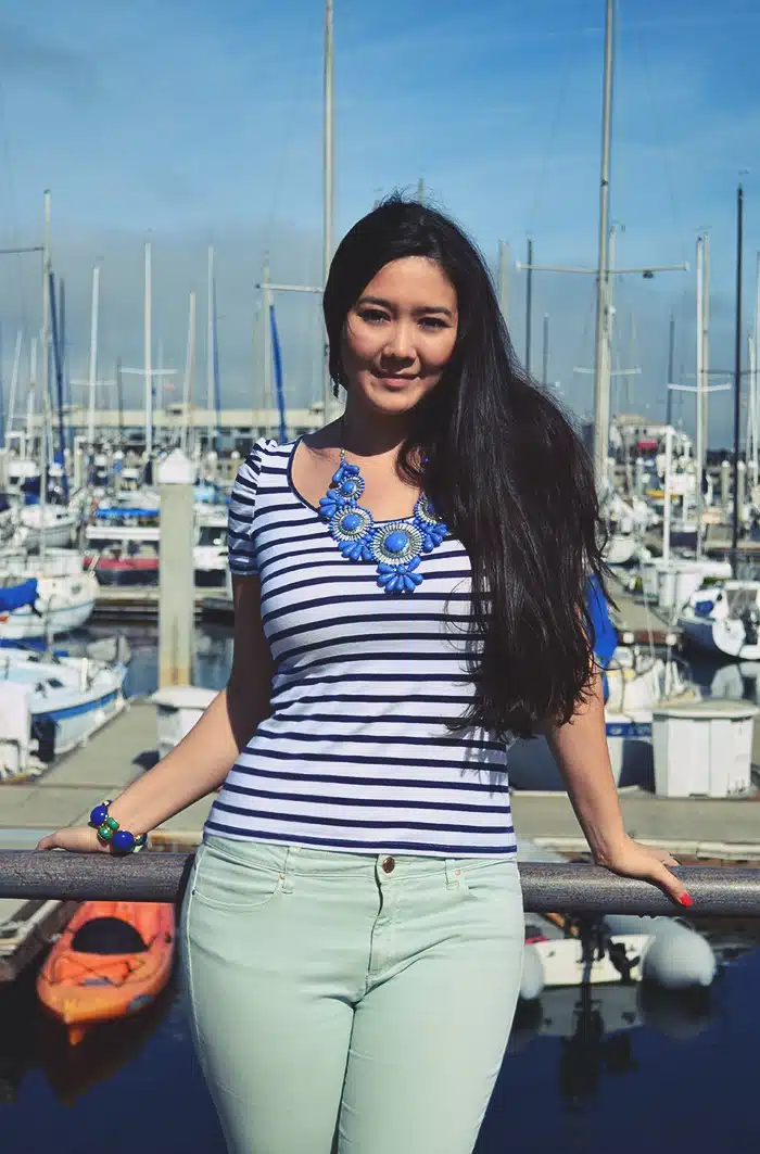 Fabulous figure and I love the nautical stripes & earrings. Monterey is always fun to visit.
