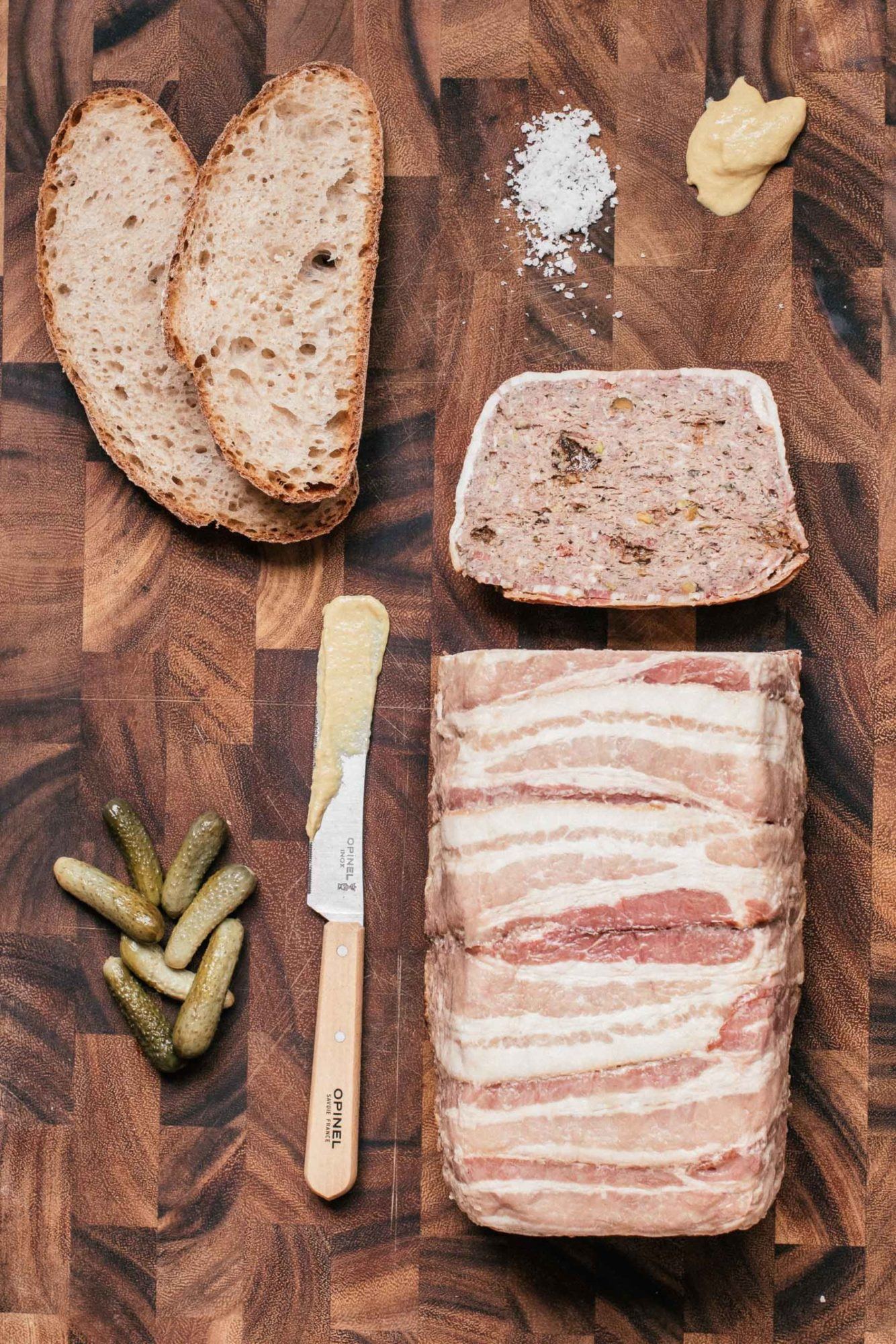 When you're serving and enjoying your lovely pâté, peel off the bacon, but save it for later! We used this bacon for breakfast the next day and crisped it up with some hashbrowns and eggs and Oh. My God. Pâté bacon just hits different, you guys. I've decided it's my favorite kind of bacon. ?