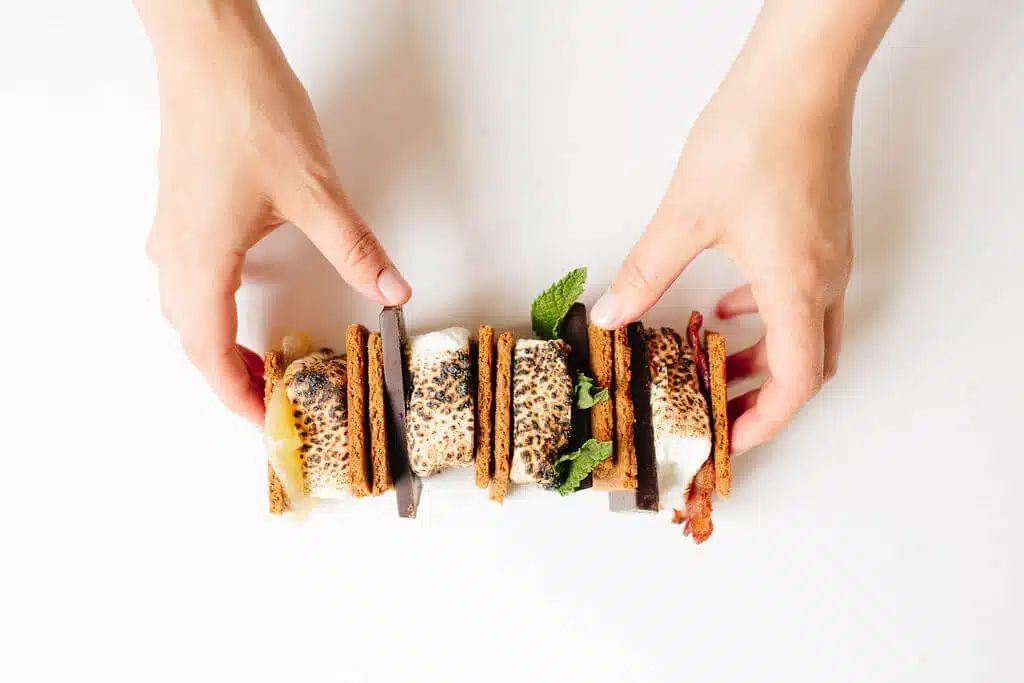 By now I’m basically a professional when it comes to s’mores making! You gotta love the toasty and gooey golden-brown crust the marshmallow forms when you roast it over the fire. Eating smores has become the staple late-night snack during a chilly evening for my family.