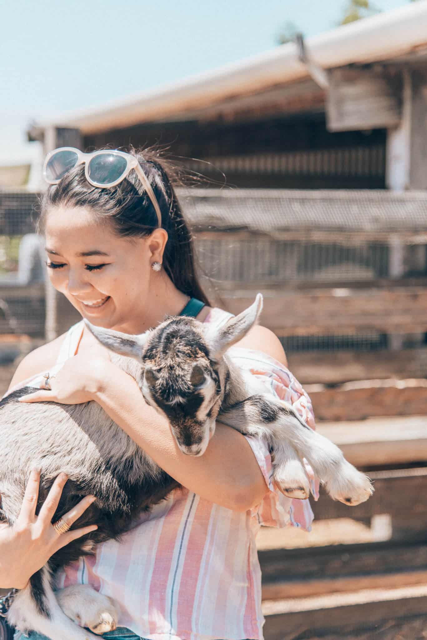 Harley Farms. We made our way straight to Harley Farms. You can book a tour in the spring and summer, and I highly recommend going during the spring and trying to time your visit when the baby goats are there!! We went end of May, which was perfect. We got to play with and hold the baby goats, and they are just so adorable you could pretty much die. You also get to go out and pet all the adult (female) goats and they’re super friendly and cute too. But the babies. They’re just so soft and sweet with their little bahhs! The tour goes through the whole property, and you also get to taste some of the goat cheese at the end. Be sure to pop into their store afterwards, where you can buy things like goat cheese tortellini to take home for dinner. One thing to note—by the end of our tour my allergies were going absolutely insane. Non-stop sneezing and itchy eyes. I mean, it was worth it (because, baby goats), but if you have allergies I’d definitely recommend starting to take something like Claritin a few days before going here so you can hopefully avoid a reaction.