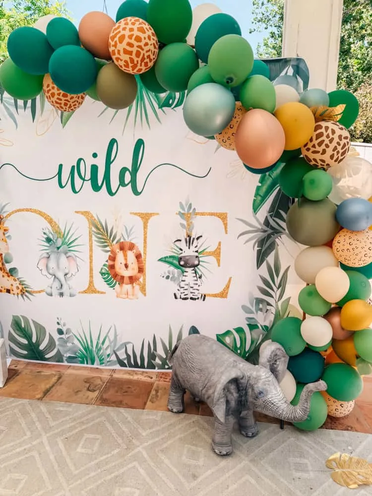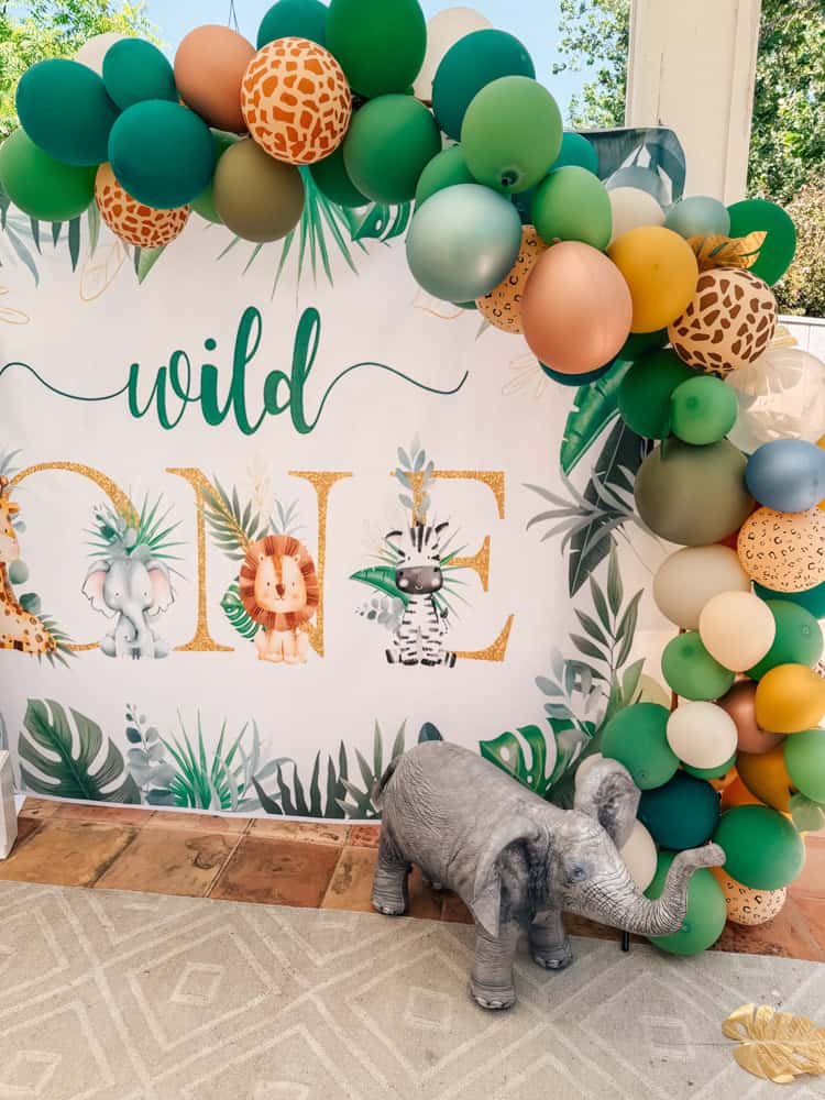 She cute!! I love a good photo backdrop! I added a #1 marquee light and some inflatable animals. Gotta say I’m pretty proud of how my DIY balloon arch turned out!