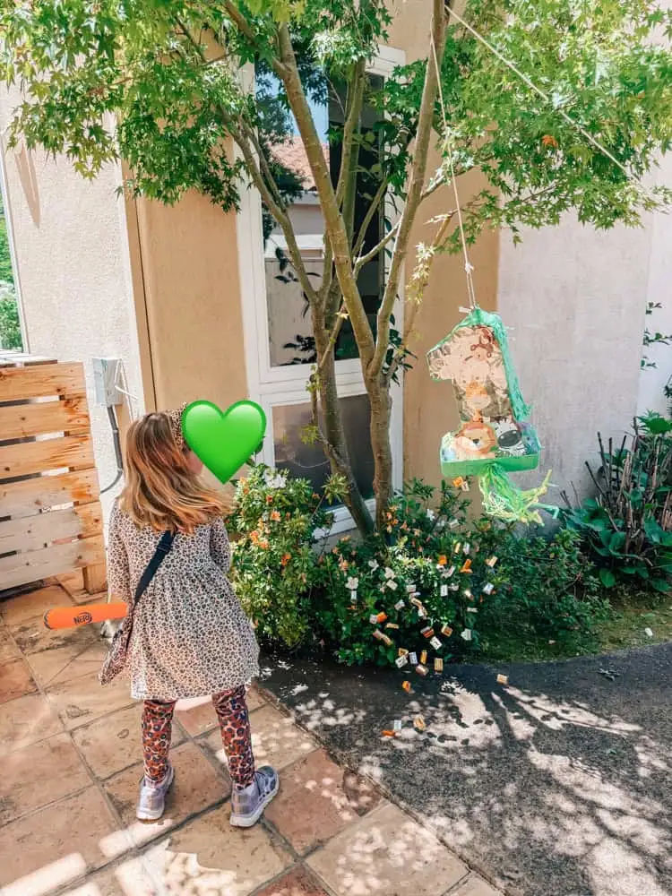Some of our best friends have kids who are a little older, like 3 – 7, so I wanted to make sure we had some fun things for them to do. We did a piñata (easy and a big hit), and I printed out coloring books with jungle animals and added their names to the books to make them feel special. Grab the Jungle animal coloring book template here.
