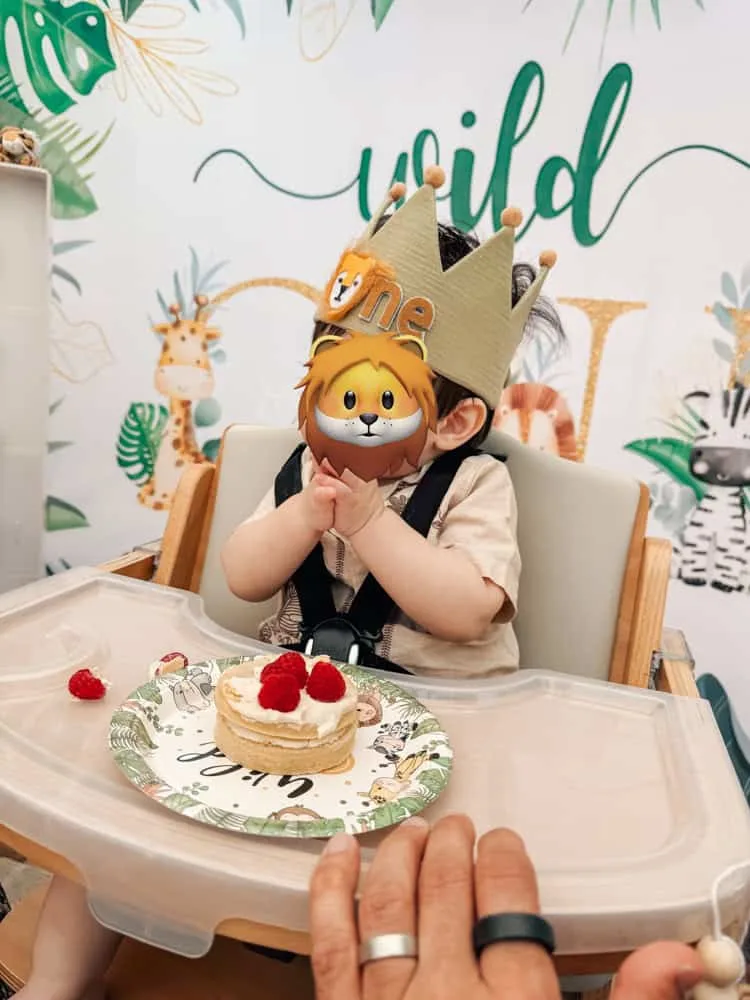 Roman definitely doesn’t need all the sugar in a regular cake just yet, so I baked him his own little smash cake. Here’s the recipe I used—it was super easy, and he loved it. This kid loves berries, so I knew it’d be a hit.